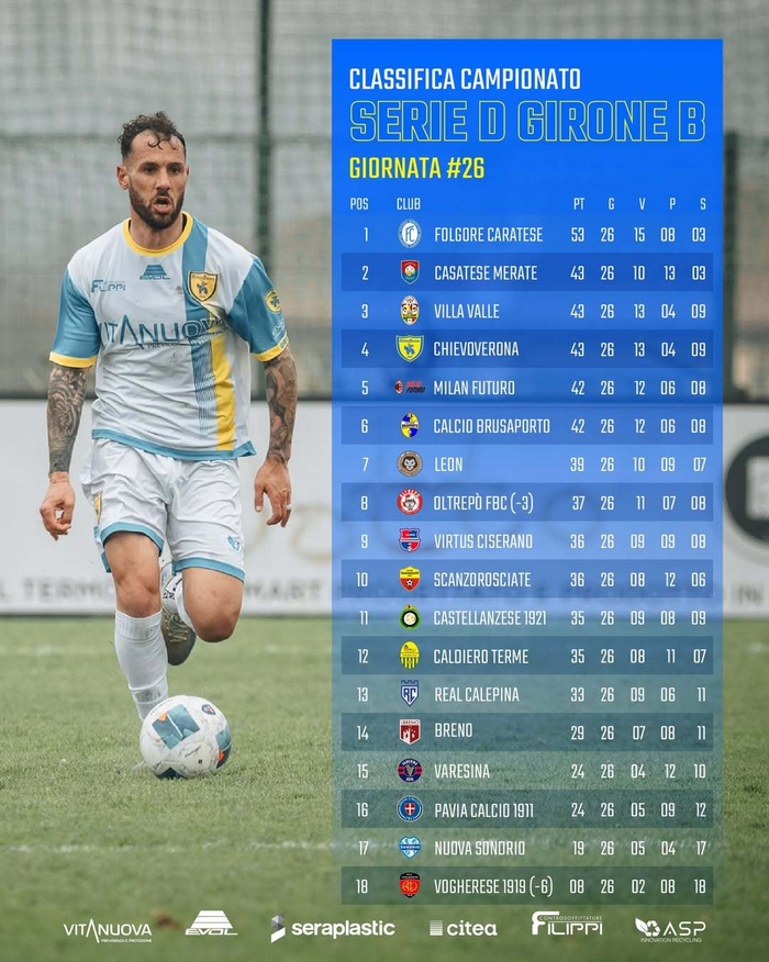 【意丁联赛B组积分榜】 #意丁联赛# 2025-26赛季意丁联赛第26轮积分榜:🔴⚫️ Milan Futuro以12胜6平8负积42分,排名降至↓第5位。[努力]#sempremilan# 发布于:四...